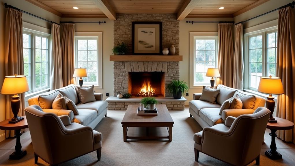 Considering the flow of movement, optimizing traffic in your living room with a fireplace is vital for comfort and functionality. You'll want to create a space that's both cozy and easy to navigate. To achieve this perfect balance, follow these tips: